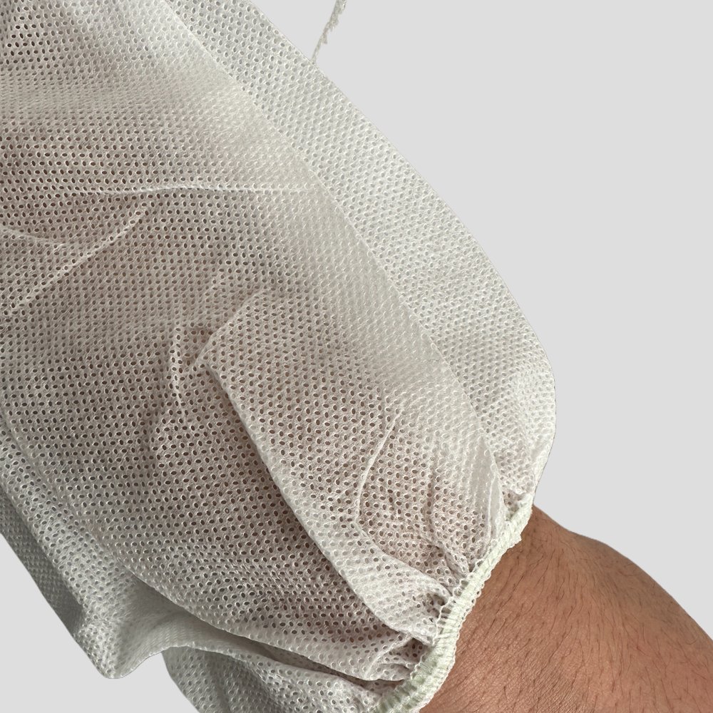 SMS is water-resistant but not fully waterproof. For high-fluid environments, choose our CPE or microporous coverall.