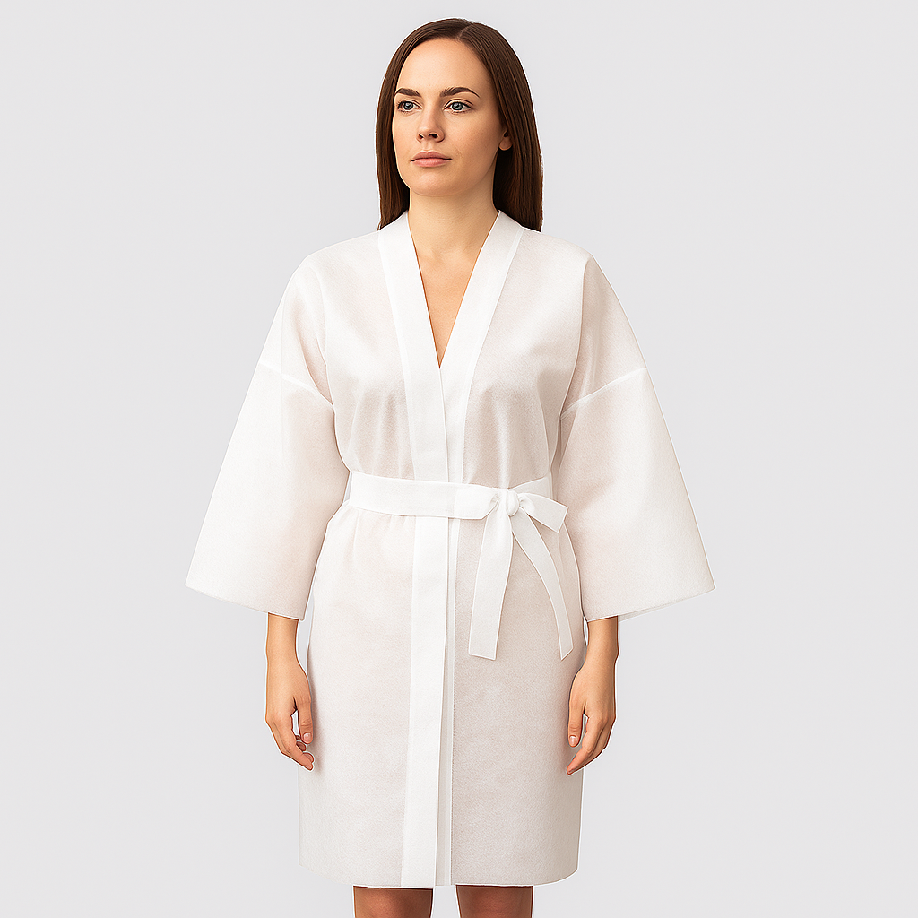 This gown is designed for single-use hygiene, reducing laundry costs and cross-contamination risks in beauty, wellness, and hotel facilities.